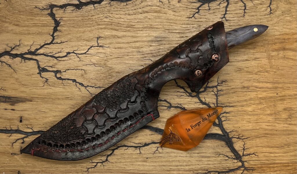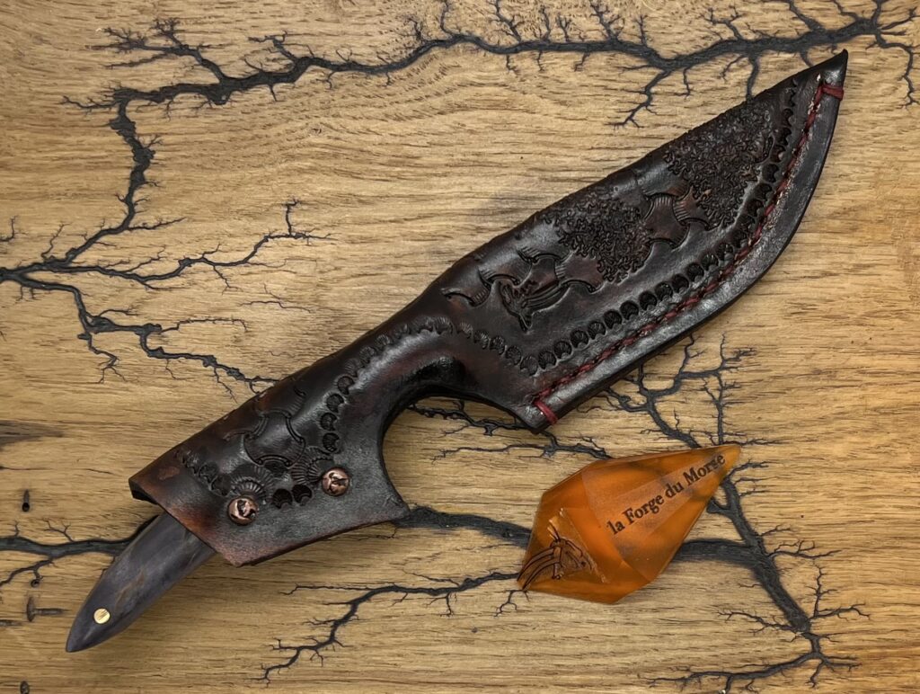 Son étui est en cuir de 4 mm réalisé par mes soins.