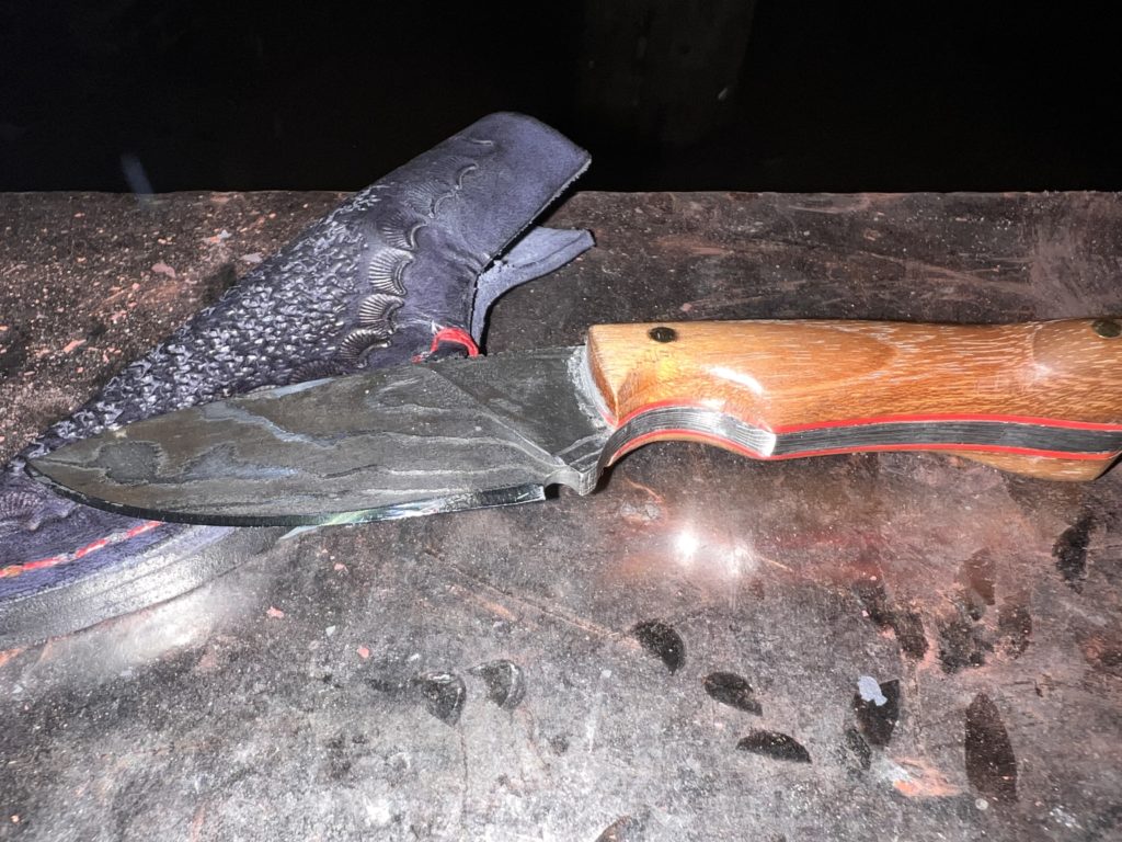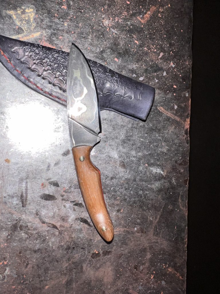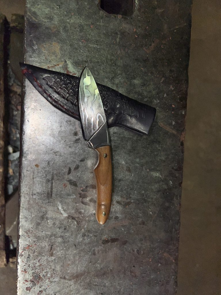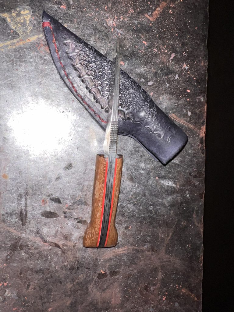 Ce couteau est en acier Damassé 02 (90MCV8) et 15N20 de 9 couches.