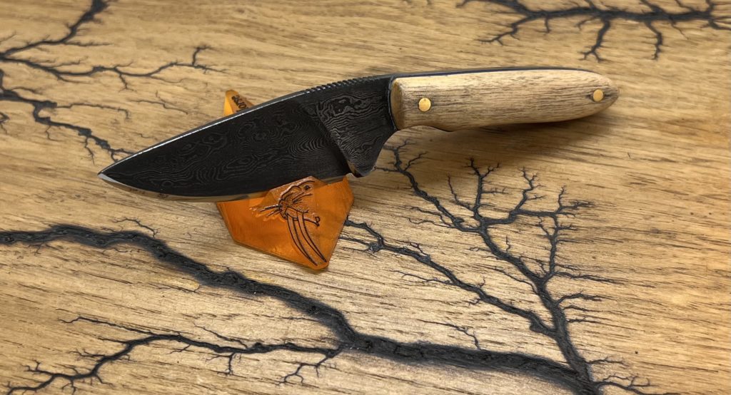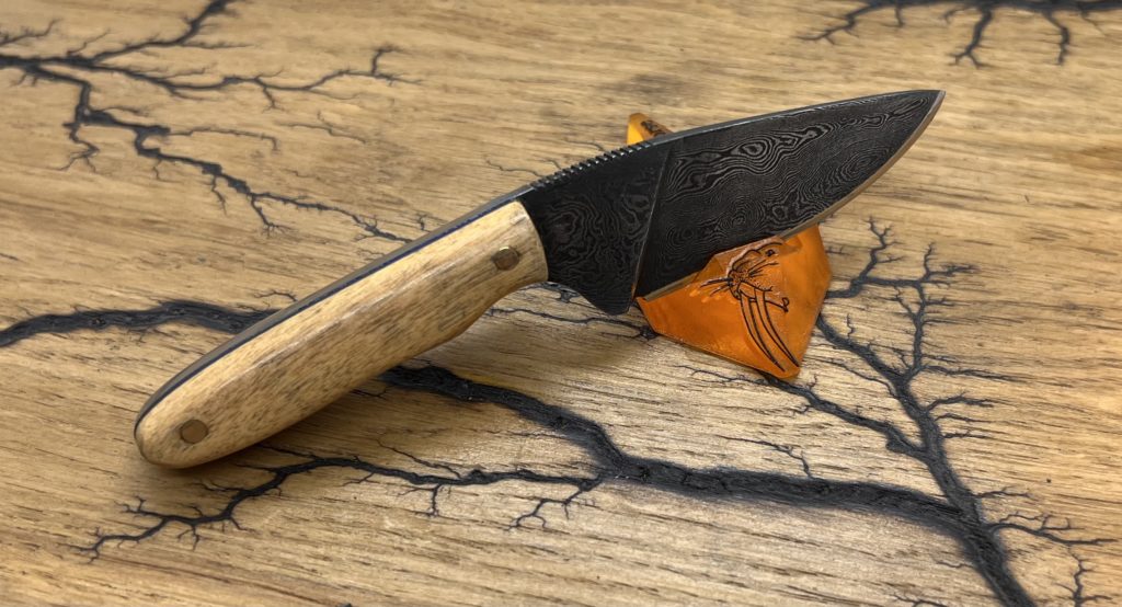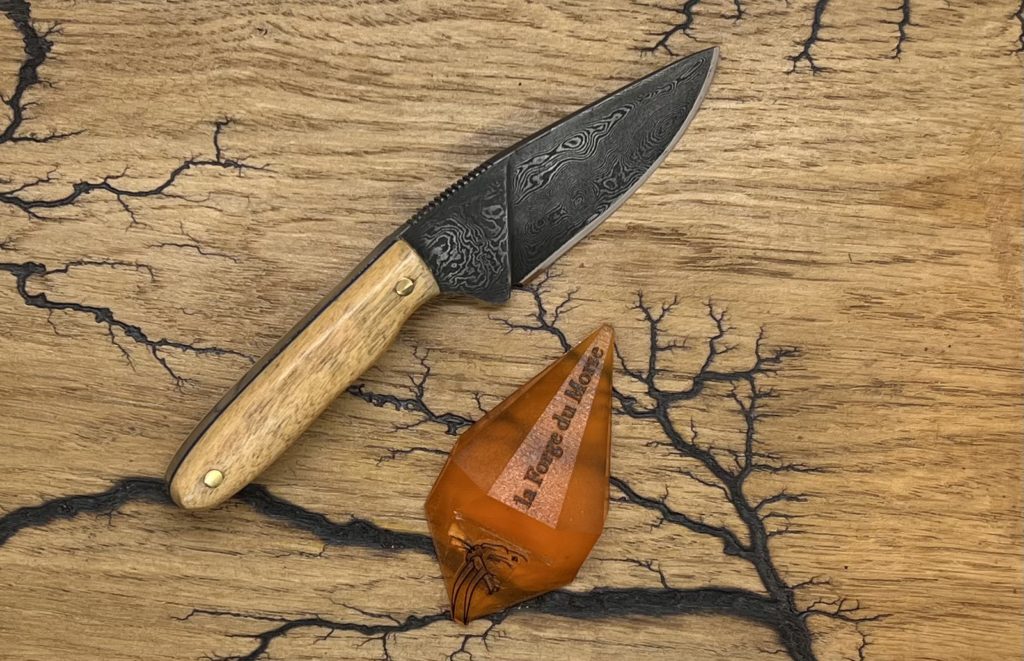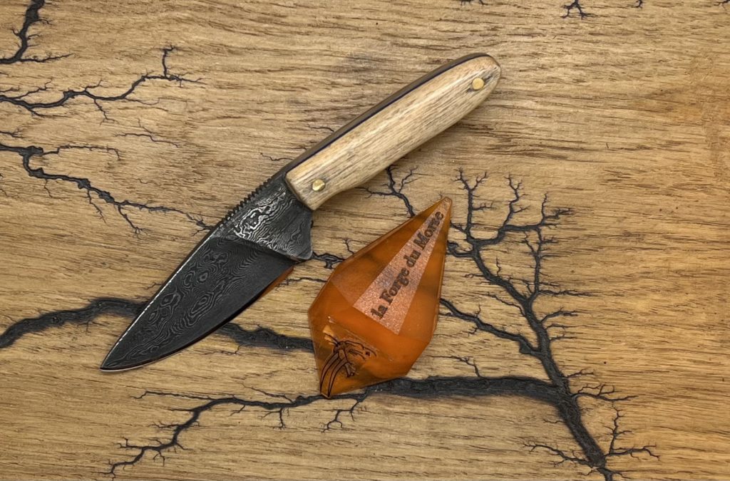 Ce couteau est en acier Damas aléatoire de 228 couches composé de 90MCV8 (O2) et de 15N20