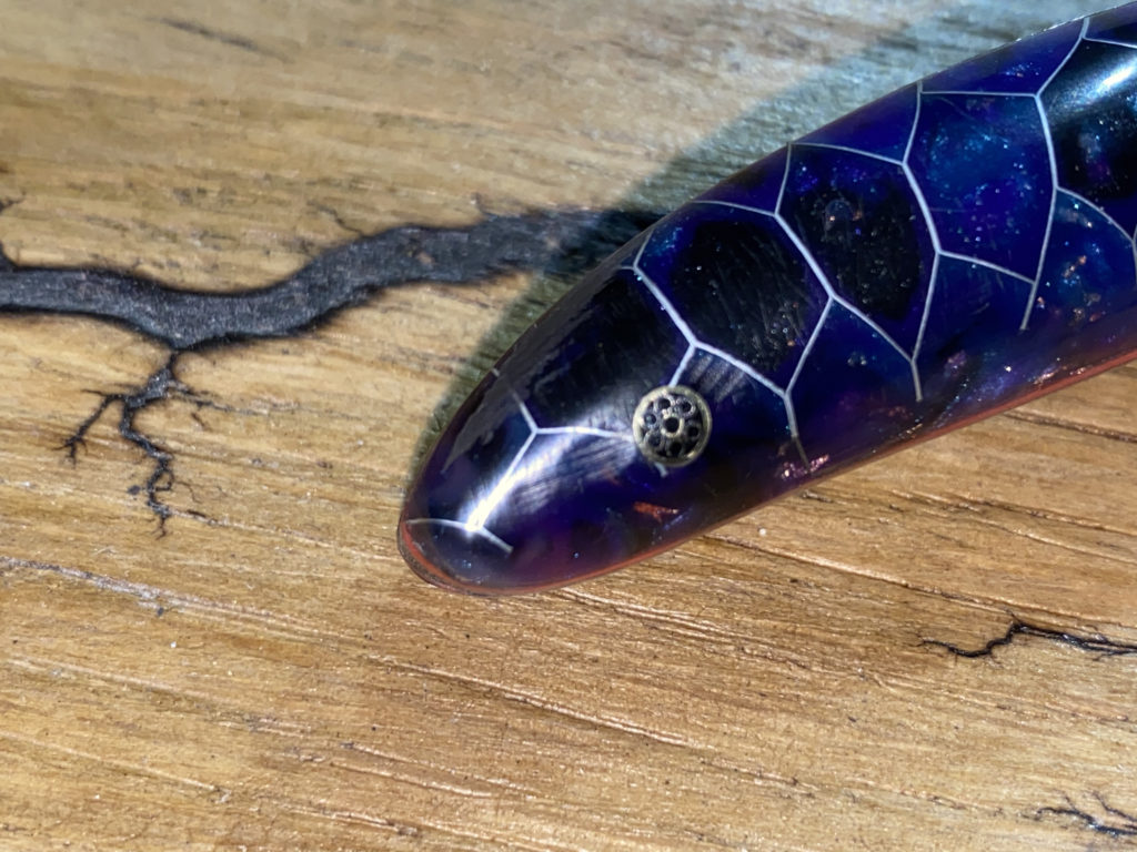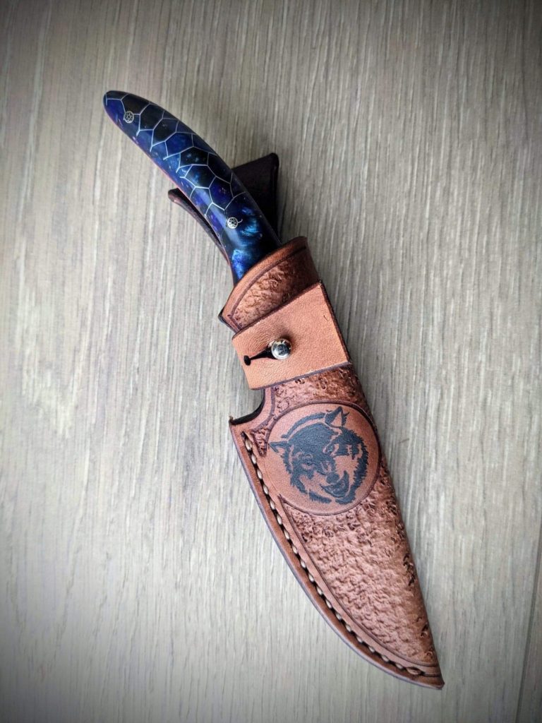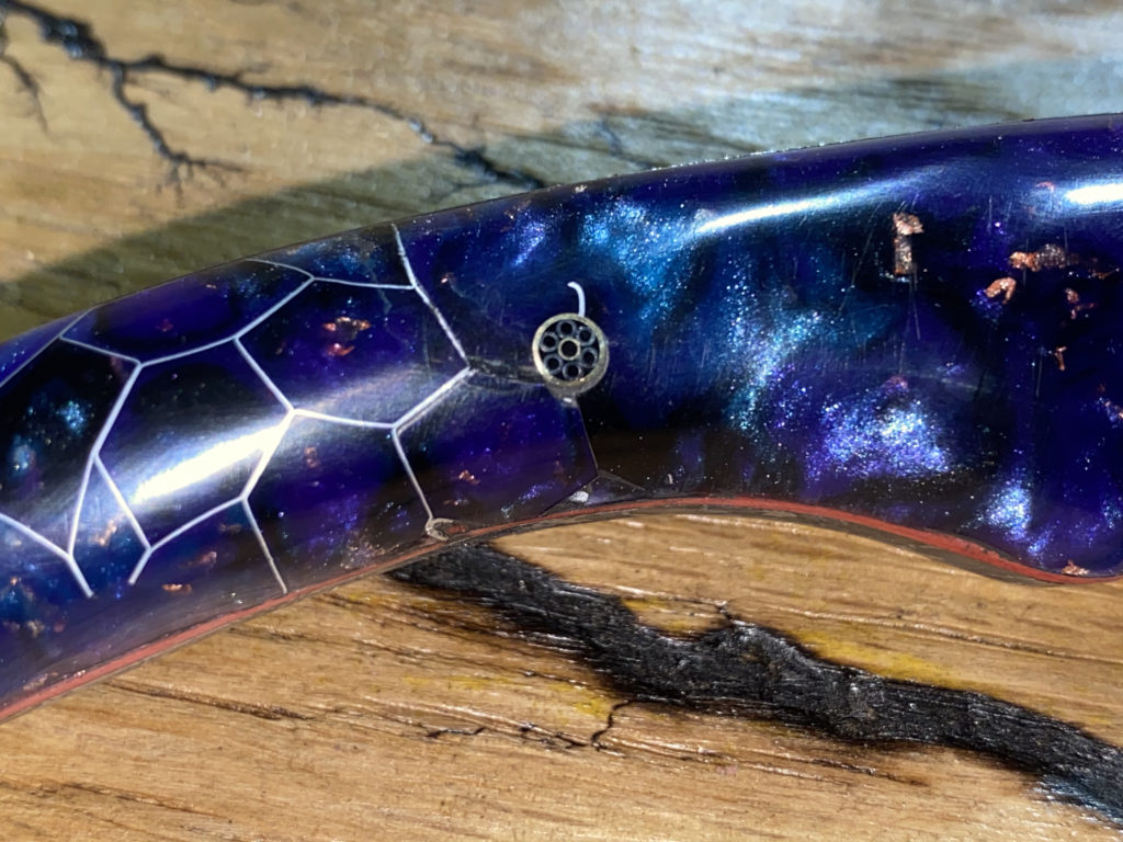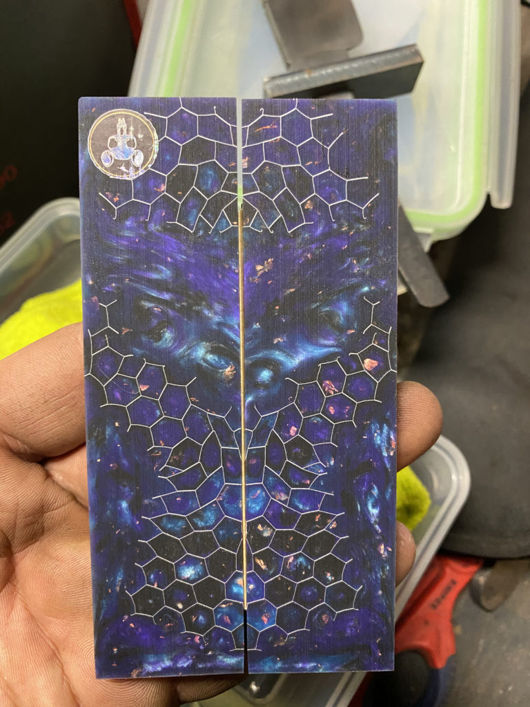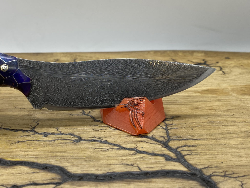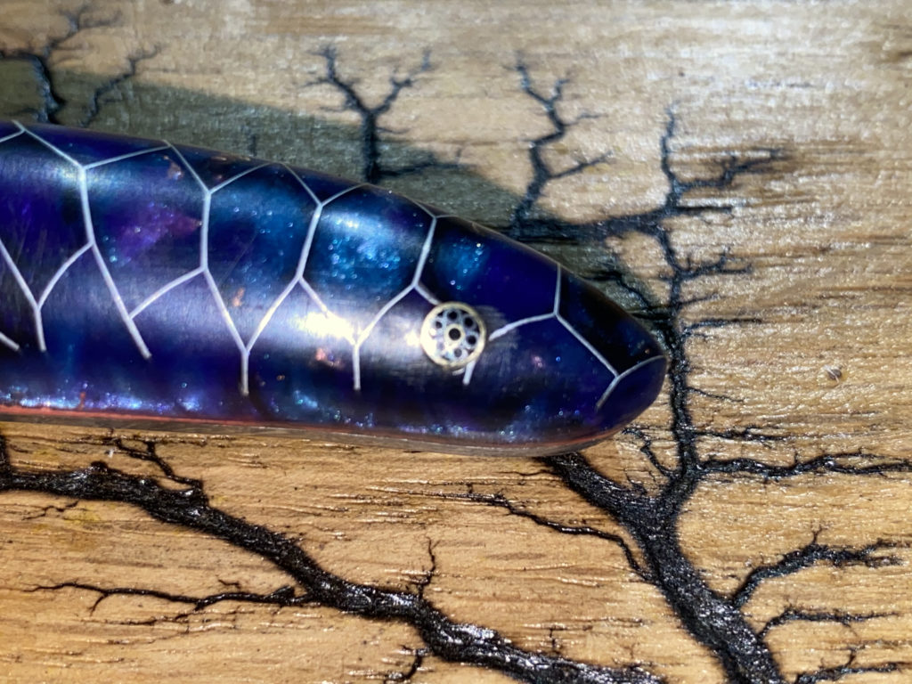 Le manche est en résine Cosmos crée par la Coutellerie du Rat Noir